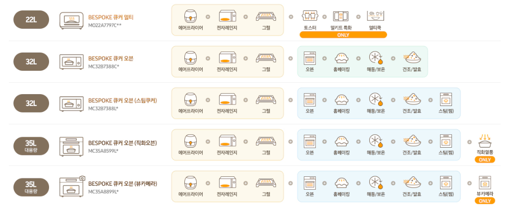 삼성 비스포크의 라인업 중 하나인 큐커 멀티는 전자레인지와 에어프라이어, 그릴 기능을 가지고있어 하나의 제품으로 여러가지 기능을 사용할 수 있습니다.