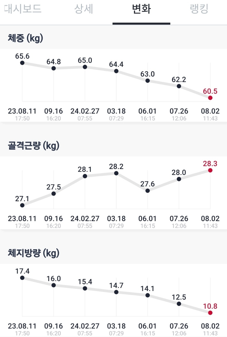 인바디 결과가 점점 좋아지는게 보이니깐 더 운동을 열심히 하게 되는 것 같아요! ㅎㅎ 조금 더 노력해서 골격근량도 늘리고 체지방량도 많이 감량해보겠습니다 아자아자!💪